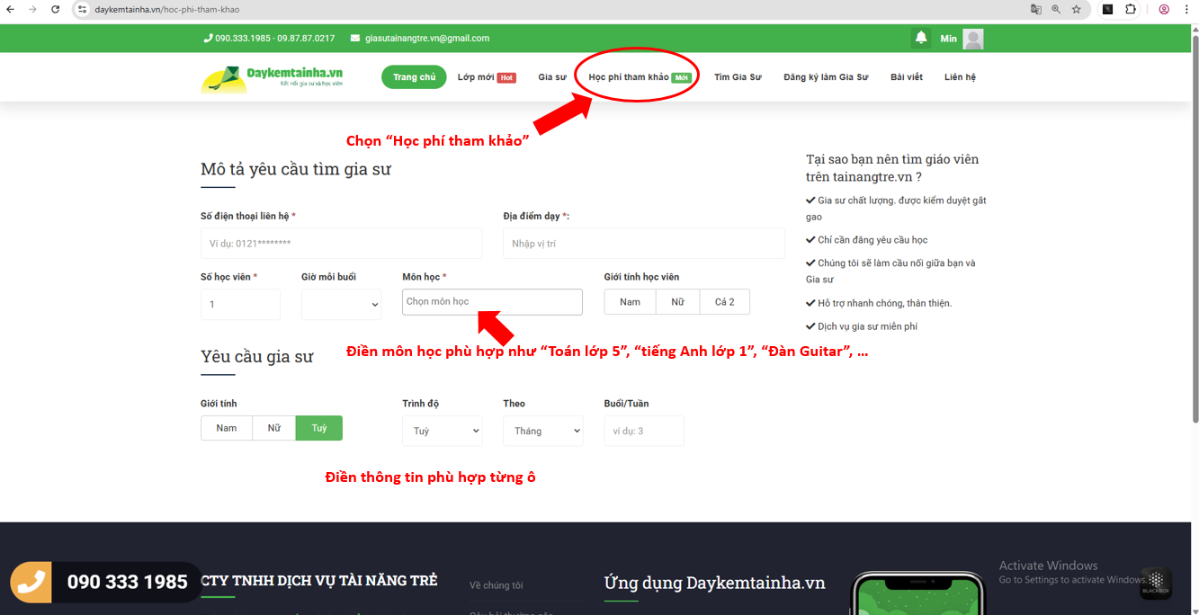 Bạn vào menu “tham khảo học phí”, ra hình như ở dưới, bạn điền và chọn theo form có sẵn các yêu cầu của bạn.